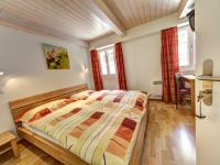 Chambres chaleureuses rénovées avec 2 lits 90 x200cm au 1er étage. Douche et WC et TV. Très belle vue sur la montagne. Prix par nuit : CHF 140.00 Une chambre budget…